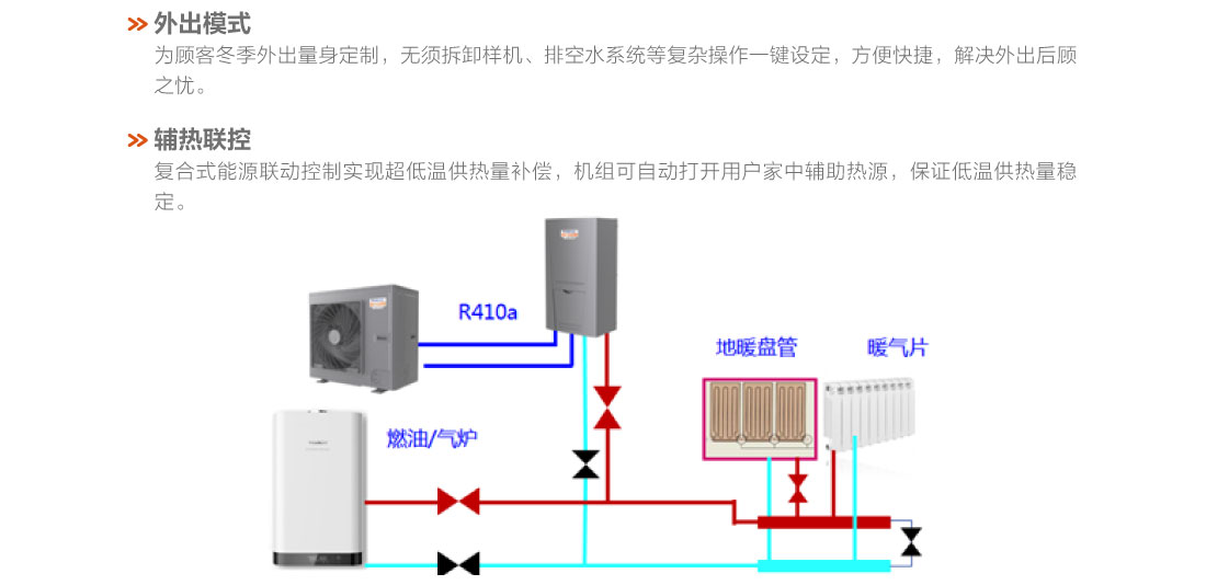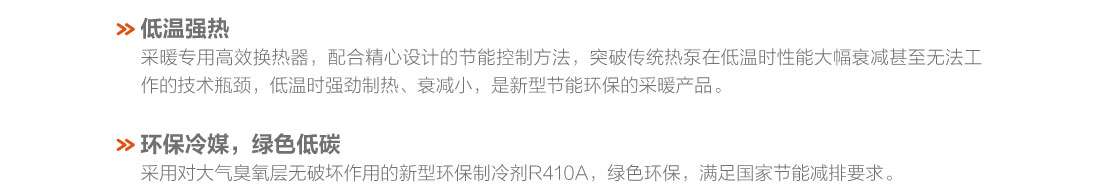 采用直流變頻技術(shù),制熱量范圍8.5~16kW,穩(wěn)定運(yùn)行環(huán)境溫度范圍-20℃~28℃、出水溫度范圍25~55℃,具有低溫強(qiáng)熱、節(jié)能高效、穩(wěn)定可靠等特點(diǎn),適用于集中供暖覆蓋不足的農(nóng)村及城郊地區(qū)以及城市獨(dú)立供暖的公寓、復(fù)式樓、別墅、單元寫字樓、餐廳、商店、娛樂場(chǎng)所等空間.
